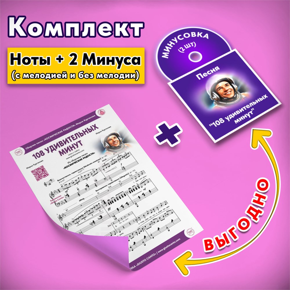 КОМПЛЕКТ: Песня «108 УДИВИТЕЛЬНЫХ МИНУТ» (ноты) ➕ фонограммы «-1» в тональности оригинала (2 шт. = с мелодией 1 трек + без мелодии 1 трек) из сборника песен для детей «Космические радости» 4+