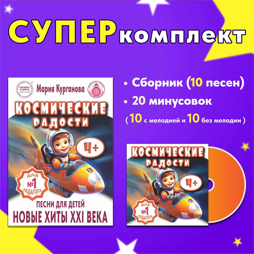 КОМПЛЕКТ: Сборник песен для детей «Космические радости» 4+ (ноты) ➕ фонограммы «-1» (20 шт. = с мелодией 10 треков + без мелодии 10 треков)